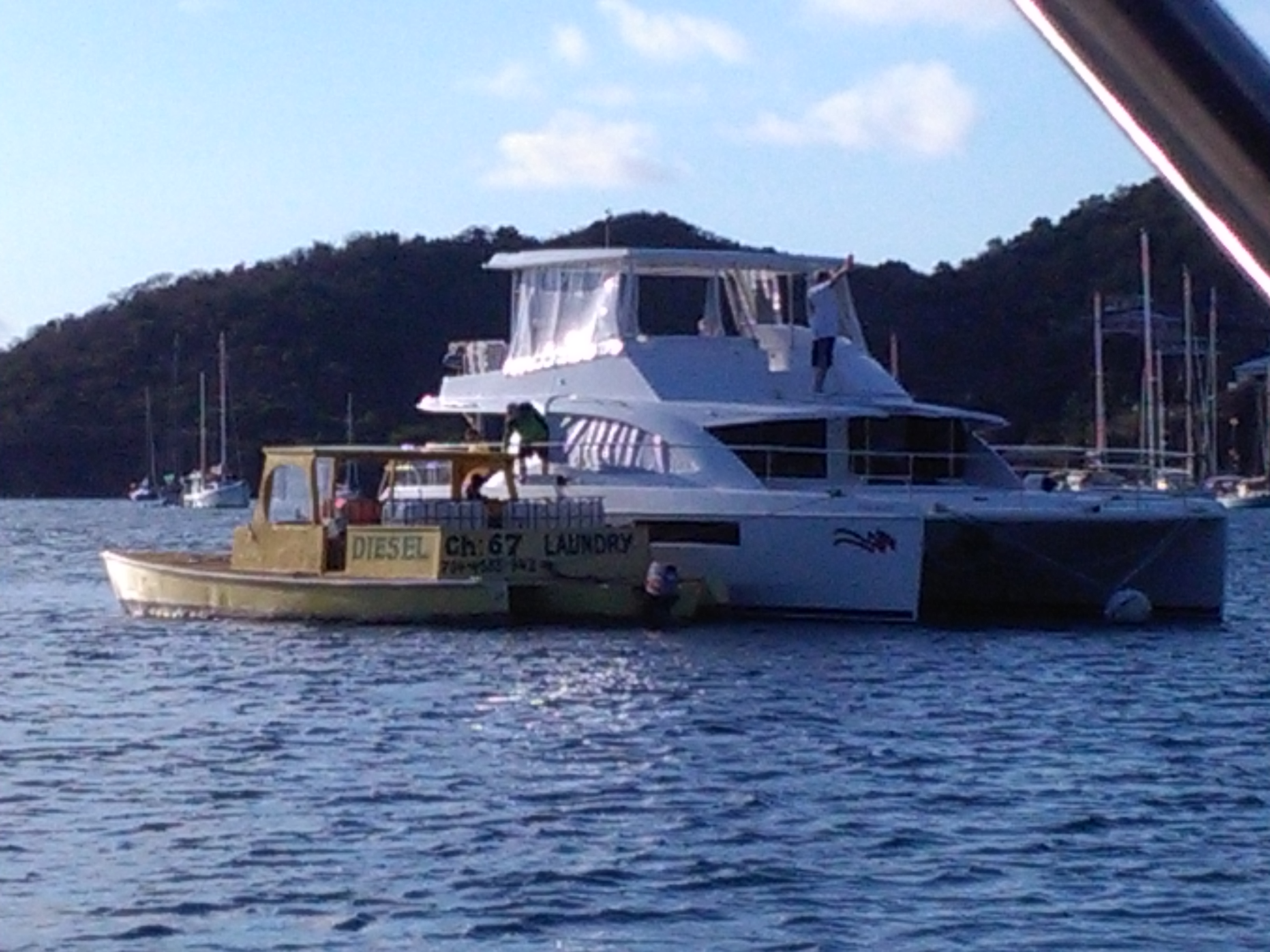 Im Ankerfeld kann man fast alles bekommen. Ein Taxi an Land, Diesel, Wasser, Brot, Früchte, Lobster, und und und…..