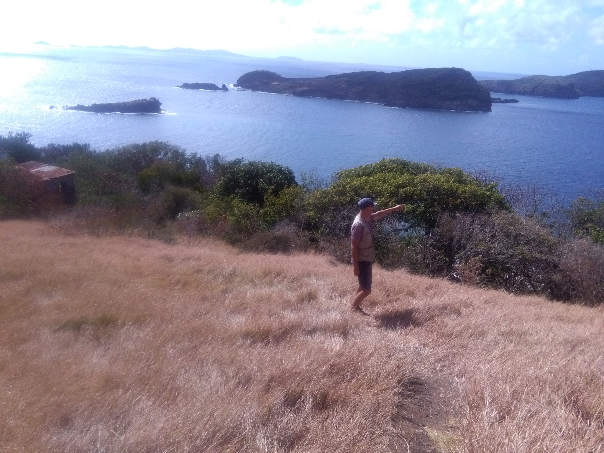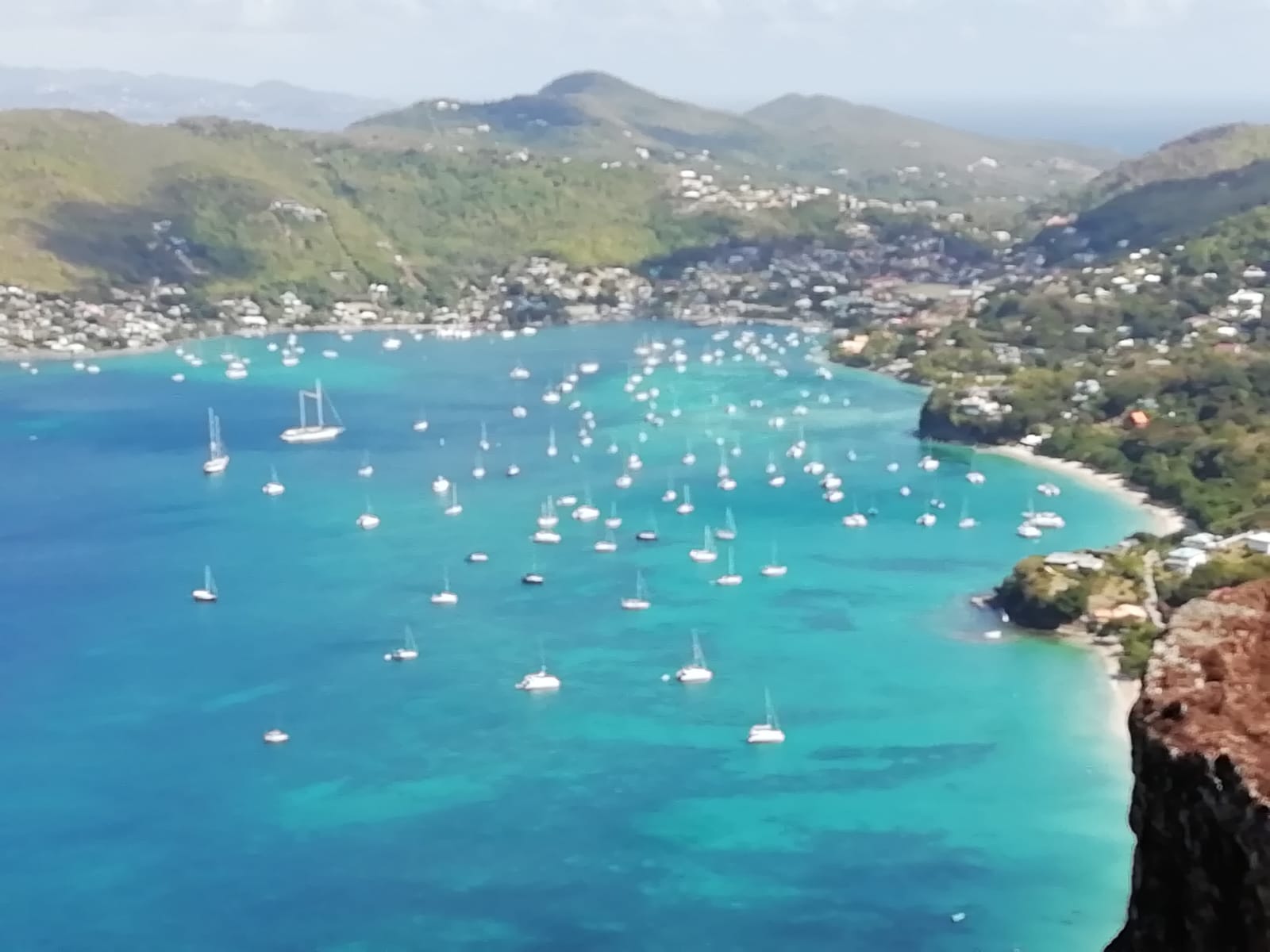 Die Taxitour nach Paget Farm soll 45 EC (15€) kosten. Für so eine kurze Tour ist uns das zu teuer. Ausserdem hat uns gestern ein Taxifahrer dieselbe Strecke für 20 EC angeboten. Wir beschließen, zu Fuß hinzulaufen. Der Weg führt an der Hauptstraße entlang bei ziemlich viel Verkehr. Unterwegs hält der Kleinbus an und fragt, ob wir einsteigen wollen. Und zwar für je 3 EC! Das Angebot können wir nicht ablehnen. Zu zehnt quetschen wir uns inmitten Einheimischer in den Minibus. Karibische Musik auf voller Lautstärke. So macht es Spaß. Im Dorf Paget Farm angekommen suchen wir den Trail zu Peggy’Rock. Der Busfahrer auf der Rücktour hält an und fragt, wo wir hinwollen. Und nimmt uns freundlicherweise wieder ein Stück zurück zu der Abzweigung, wo wir hoch müssen. Das hätten wir wohl nicht so leicht gefunden.