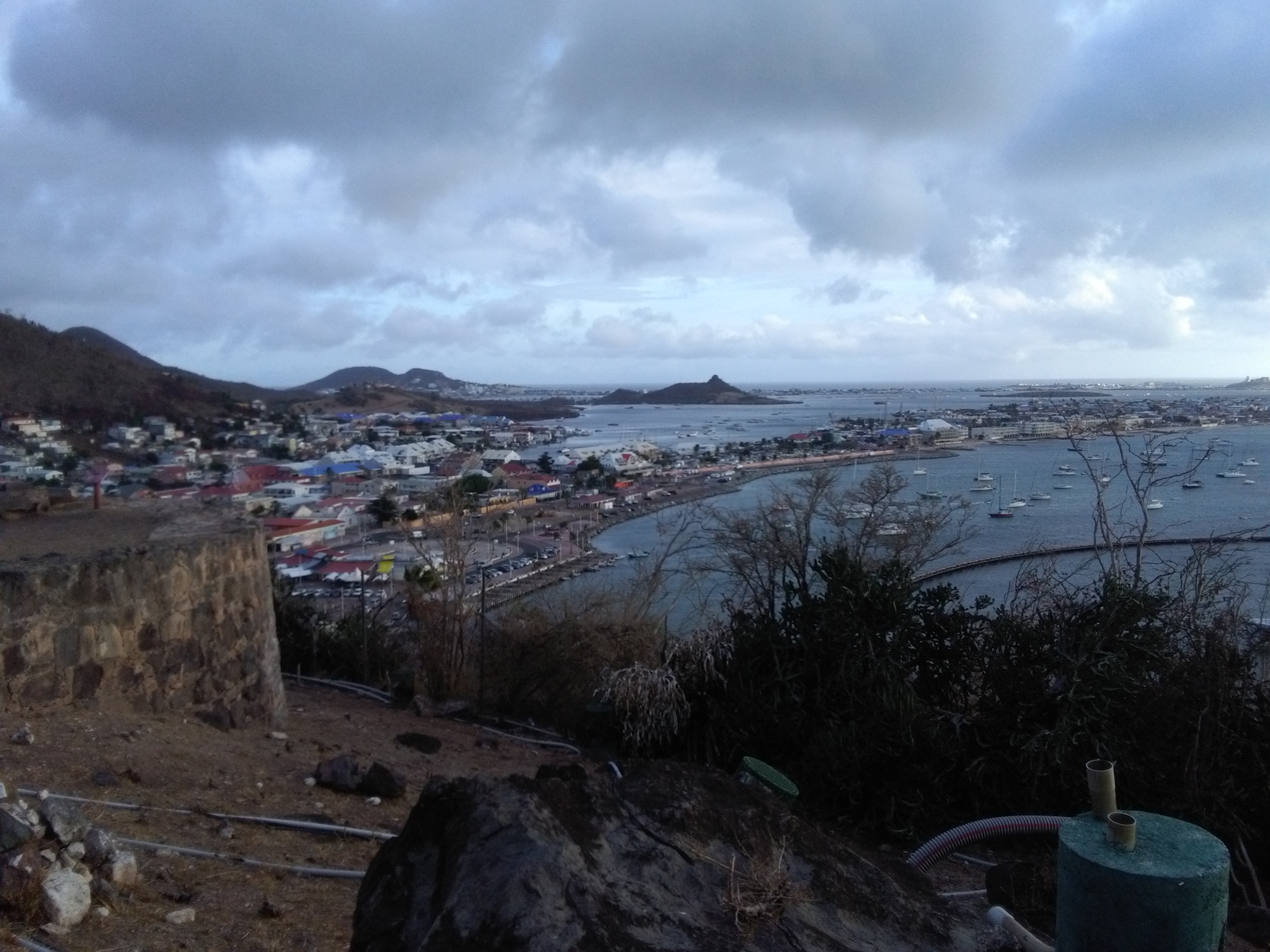 Also steigen wir mal zum Fort Luis hoch, genießen die wunderschöne Aussicht über die Marigot Bucht und haben unseren Spaß dabei.