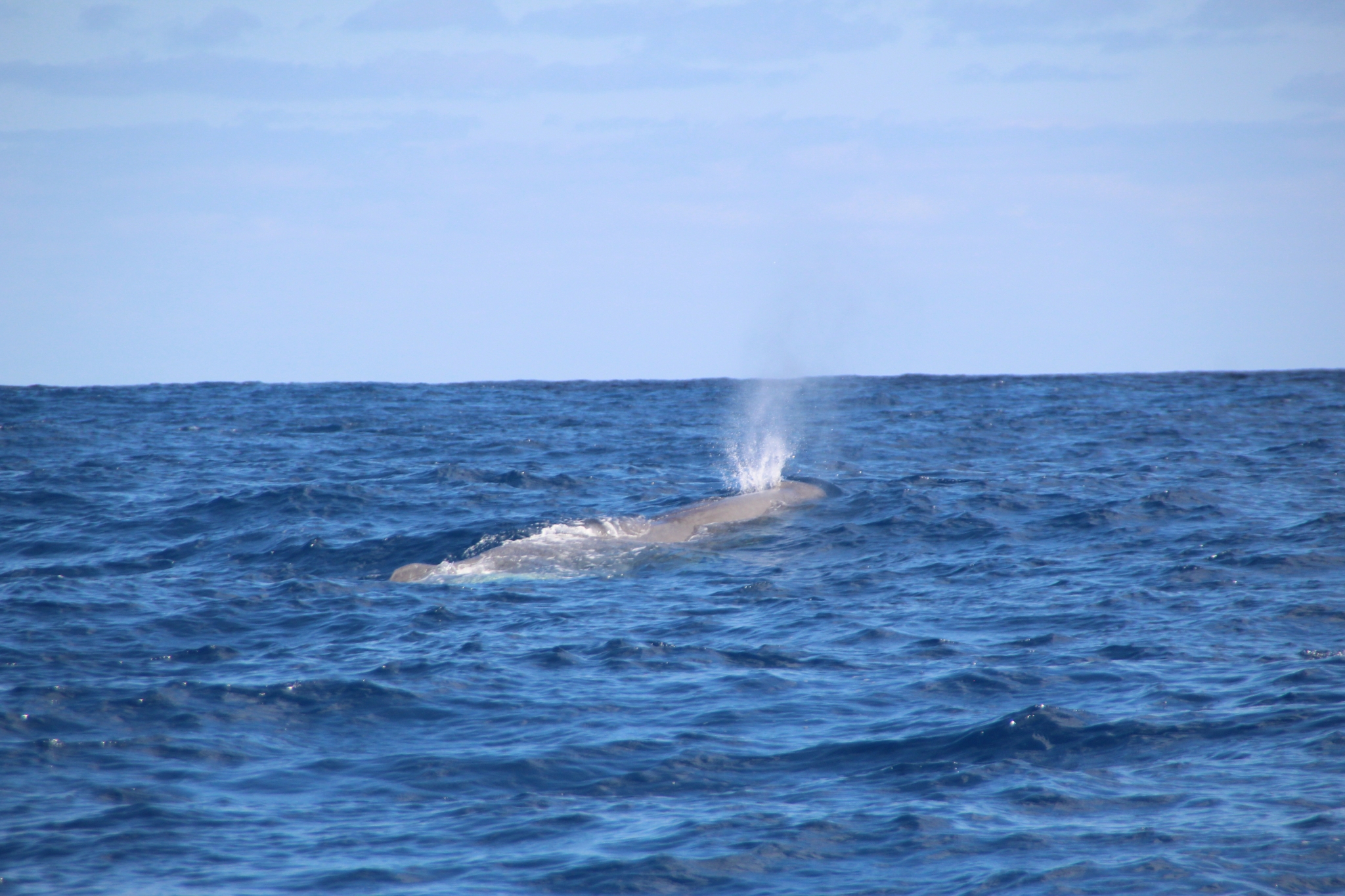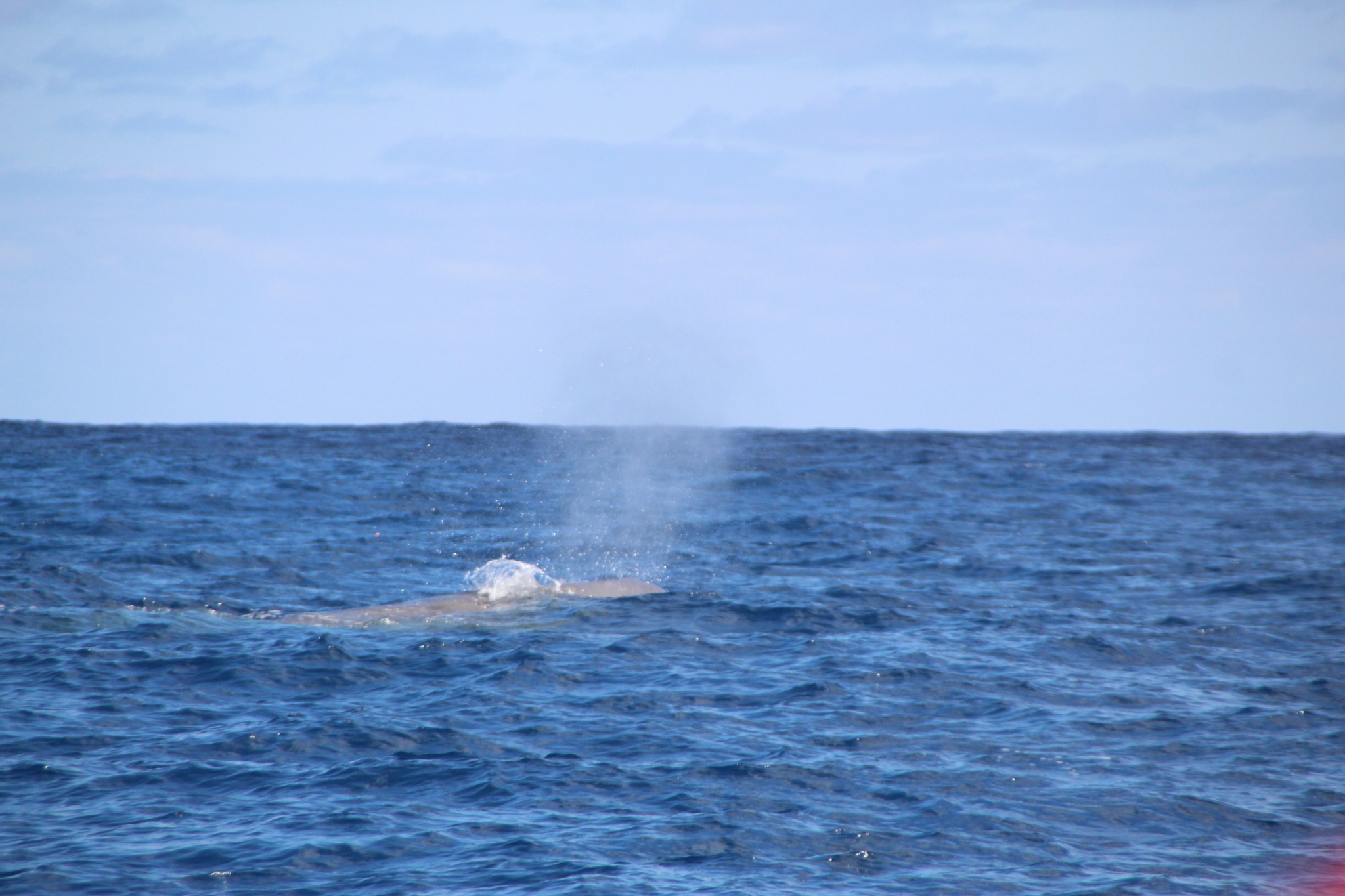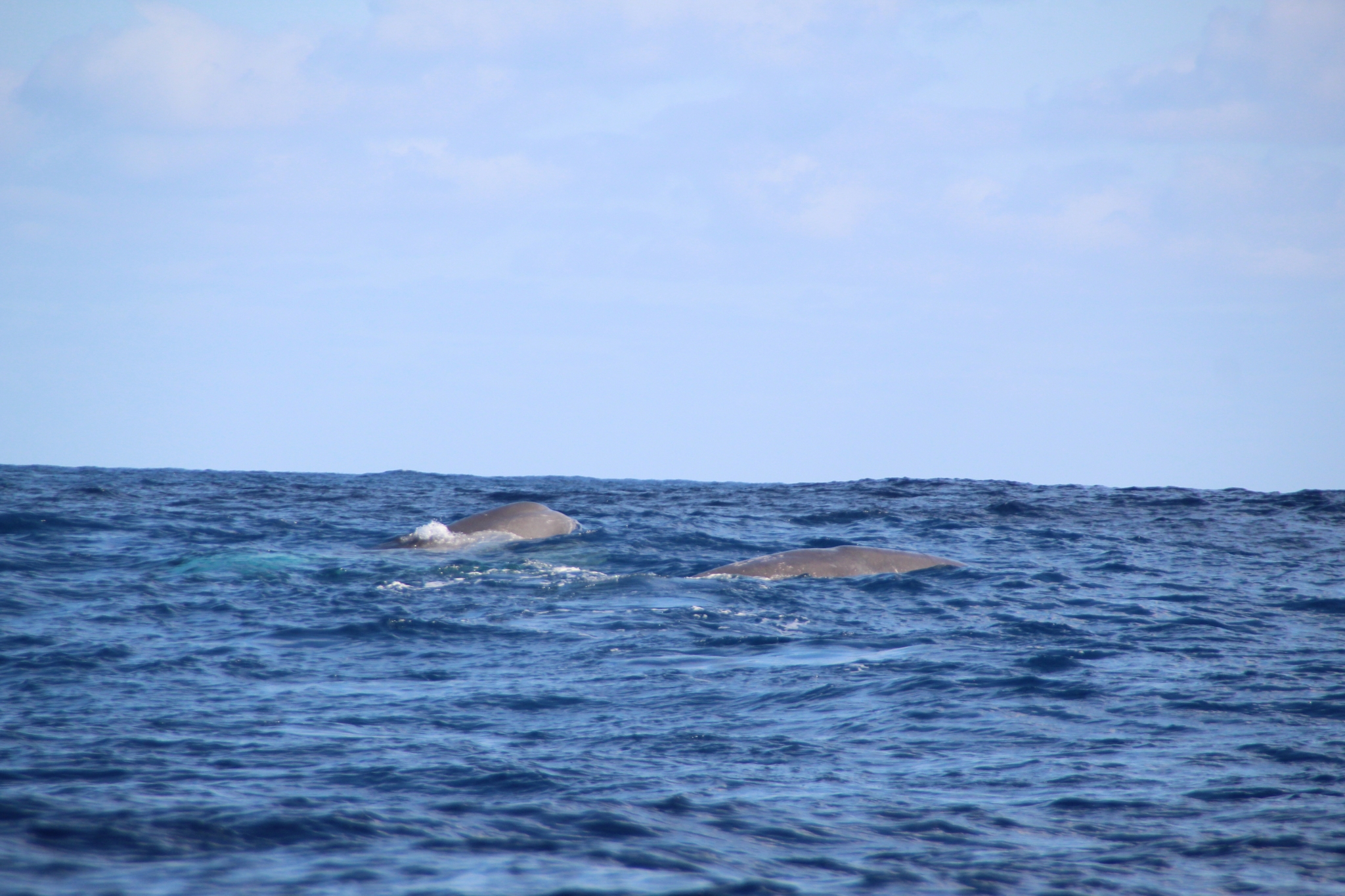 Etwa 5 Pottwale mit Delfinen am Spielen. Ein faszinierendes Schauspiel, das auch die Guides bisher noch nicht gesehen haben.