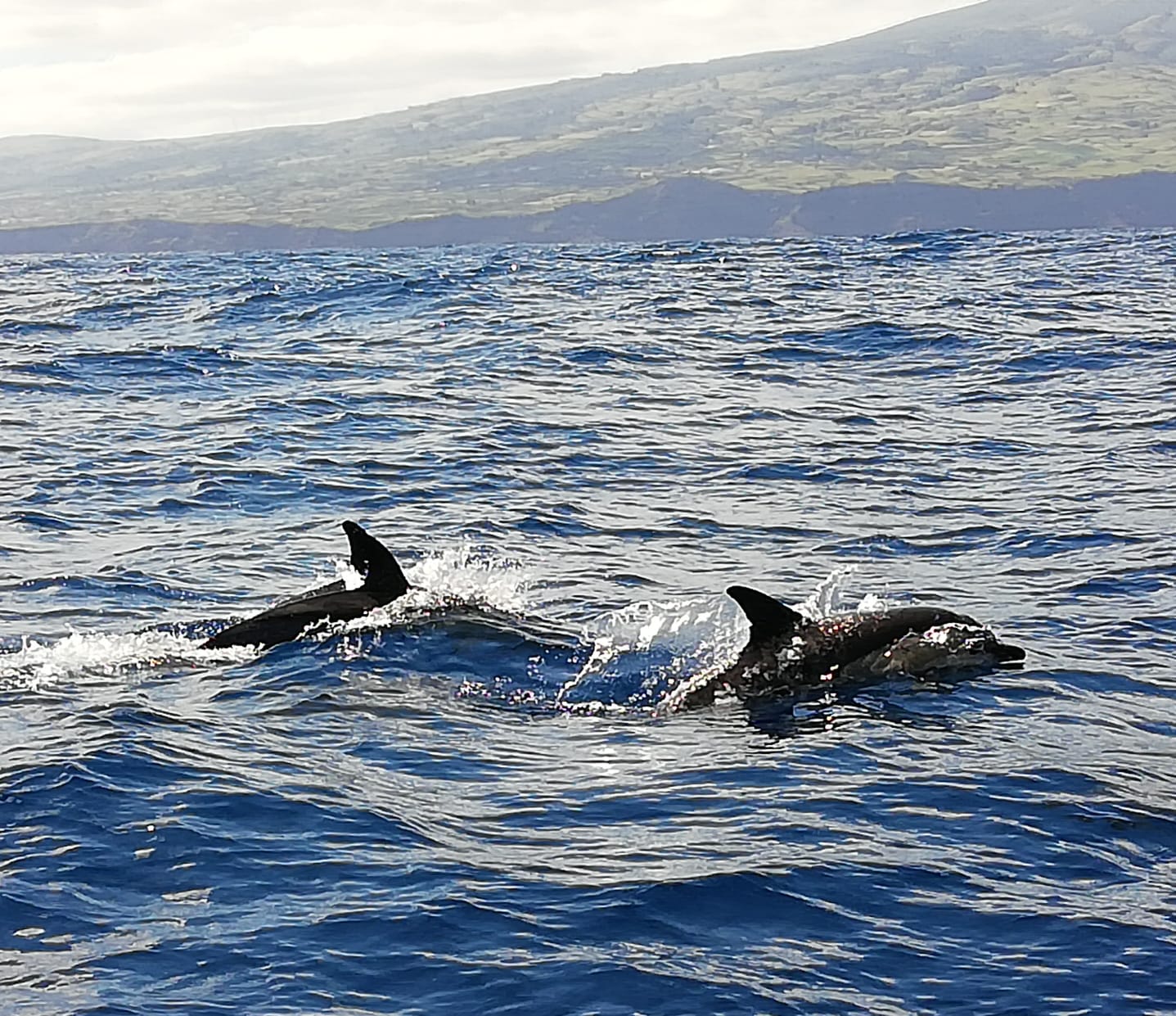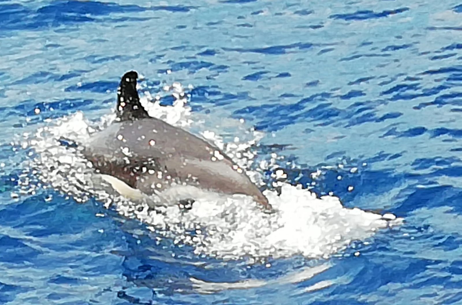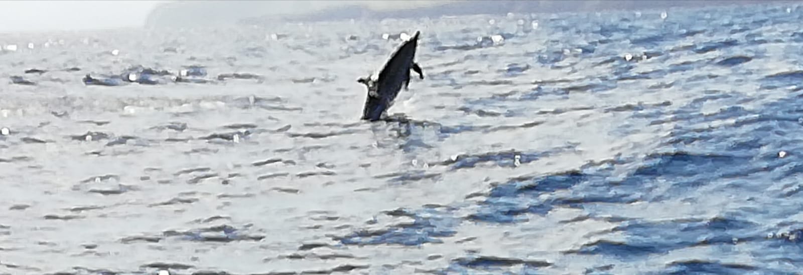 Etwa 5 Pottwale mit Delfinen am Spielen. Ein faszinierendes Schauspiel, das auch die Guides bisher noch nicht gesehen haben.