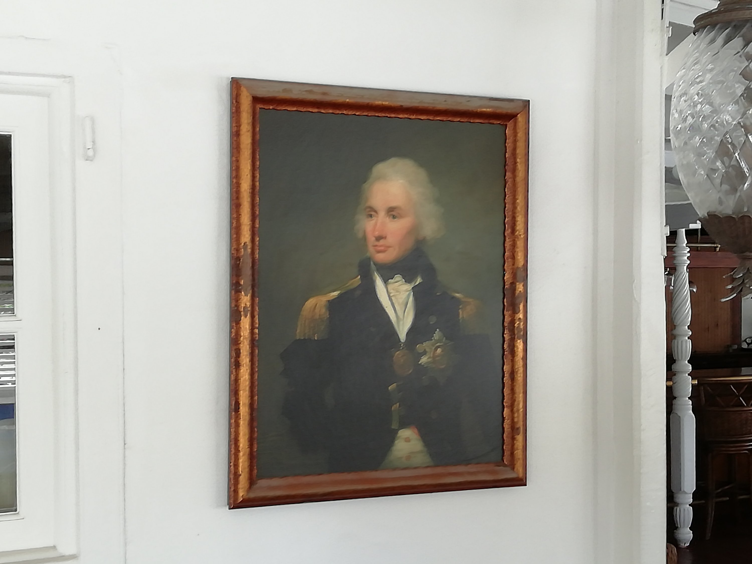 Von einer dieser Plantagen stammt auch die erste Gattin des guten alten Admiral Nelson und beide hängen hier einträchtig in der Diele zusammen.