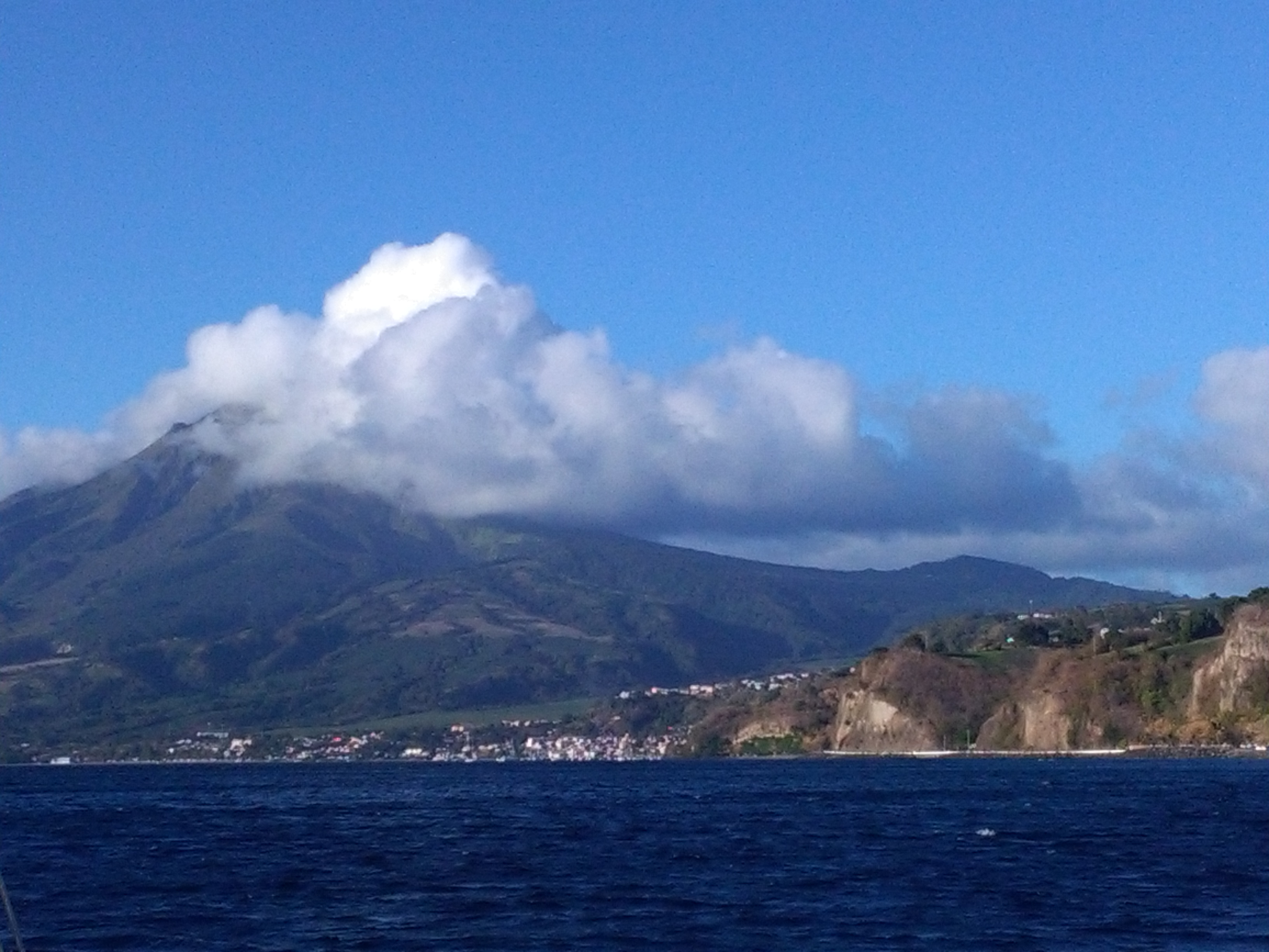 Nachdem wir uns reichlich mit Rum eingedeckt haben, geben wir das Auto zurück und legen ab. Wir segeln die Küste nordwärts hinauf bis vor St. Pierre, wo wir unseren Anker legen.