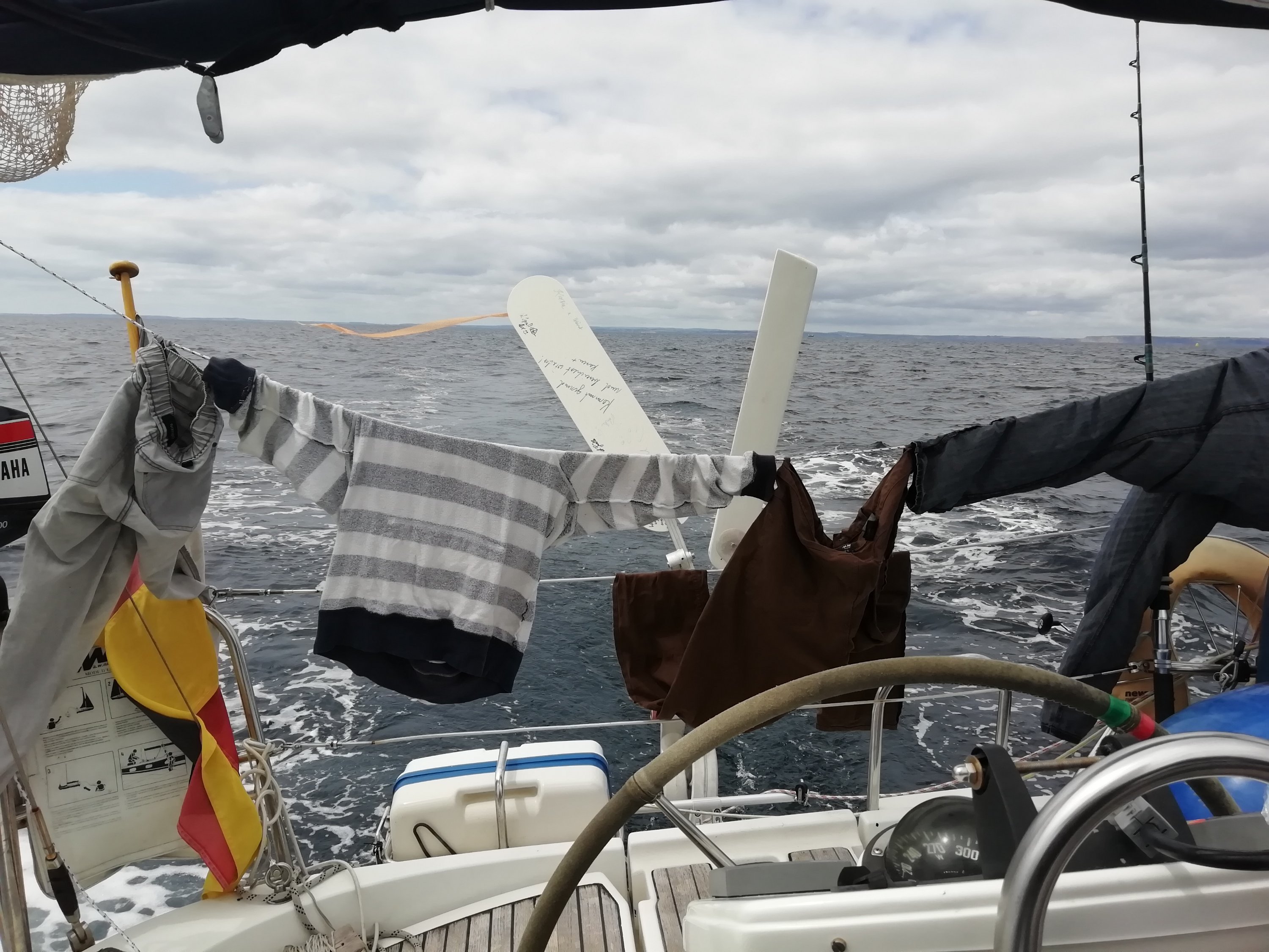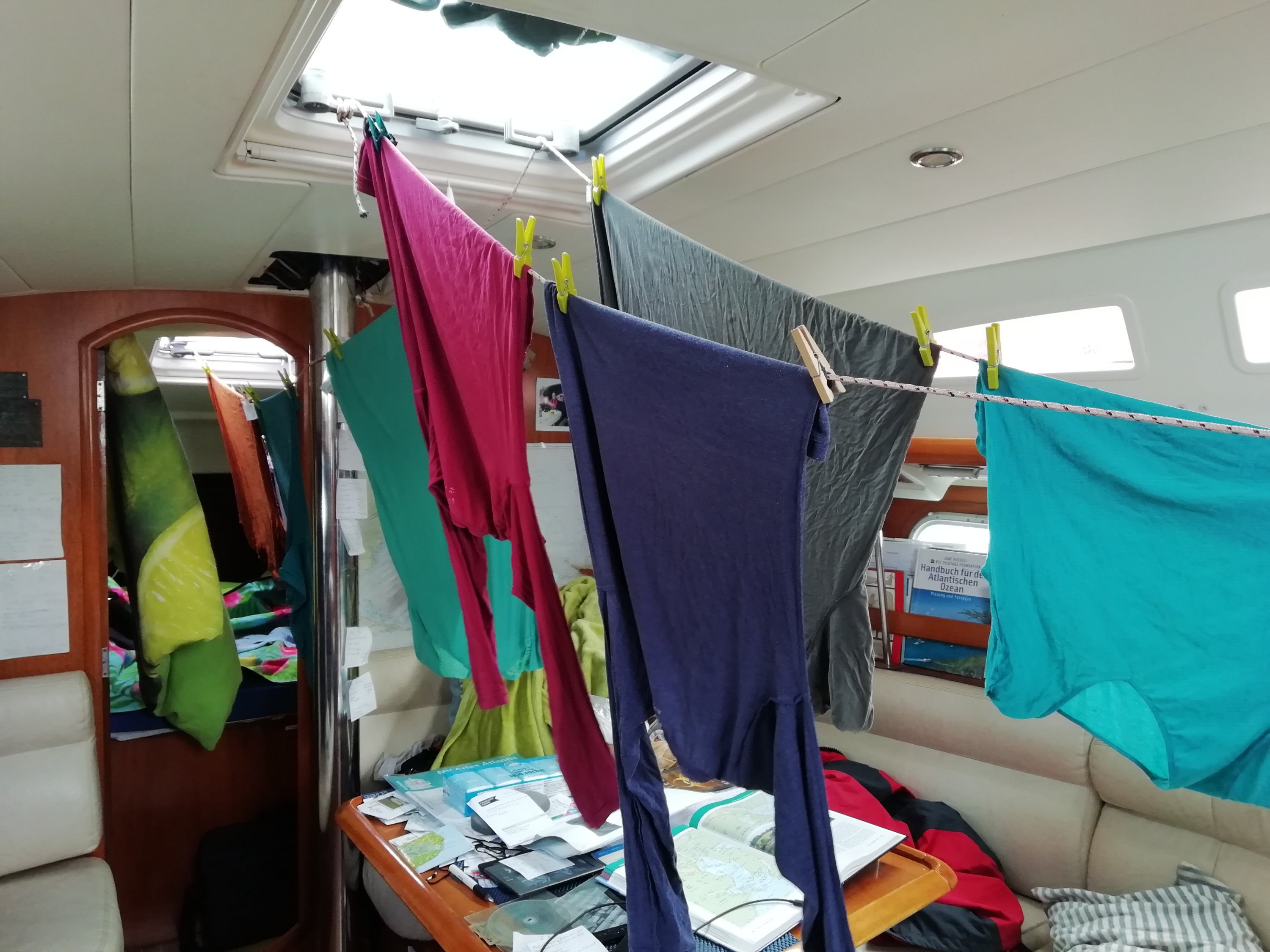 Und so sieht es bei uns auf dem Boot aus, wenn sich Reise- und Waschtag überschneiden: