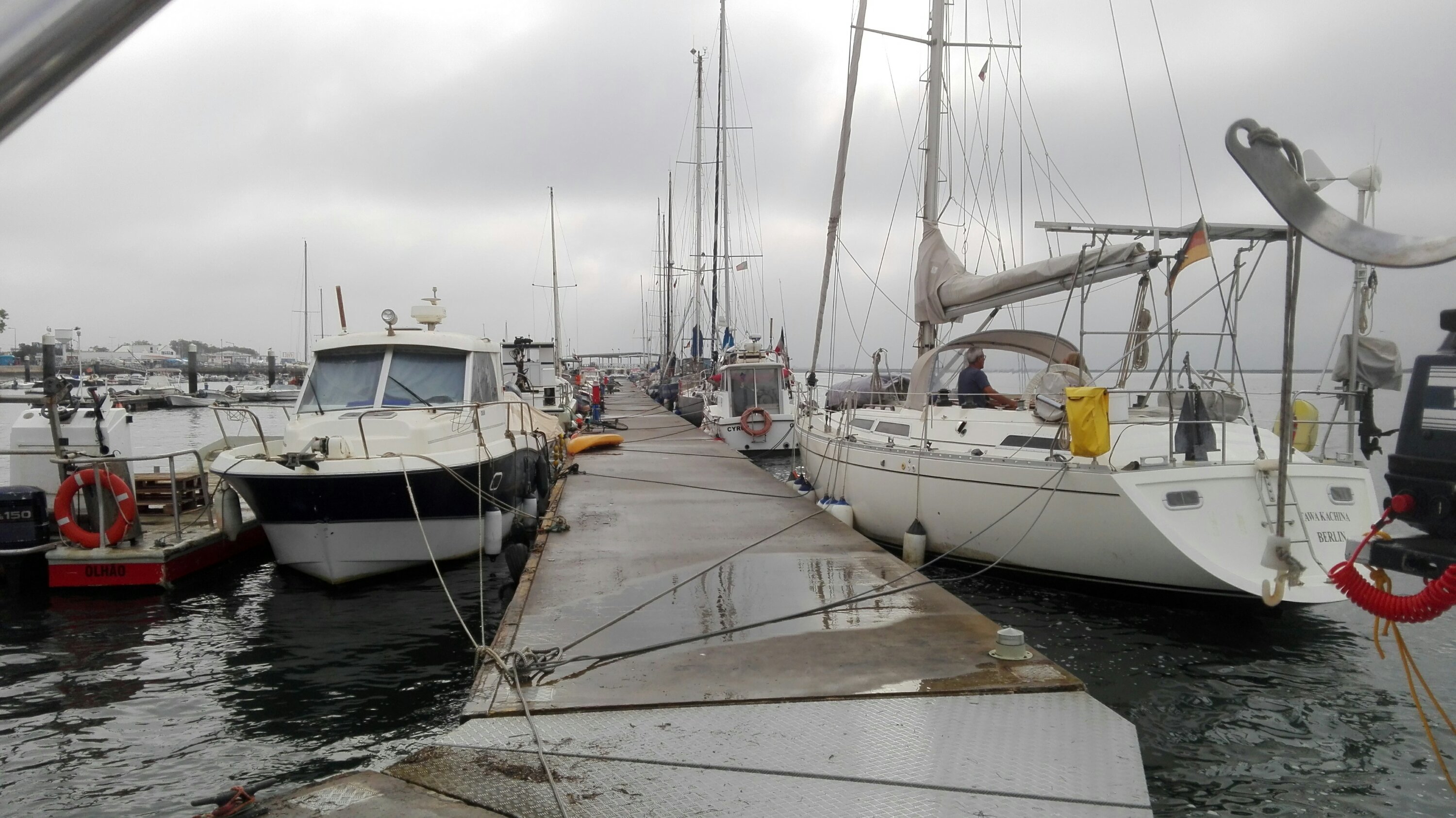 Die Jungs sind weg. Das Sightseeing Programm mit dem Mietauto ist beendet. Nun können wir uns wieder unserem seglerischen Alltag widmen und einen näheren Blick auf die Umgebung werfen, in der wir uns seit zwei Tagen befinden. Die Anlegemöglichkeiten in Olhão sind nur sehr eingeschränkt möglich. So hat es uns an den Steg der Lang-Langfahrer verschlagen. Kein Wasser, kein Strom. Aber es wird auch scheinbar keine Hafengebühr erhoben. Die Wassertaxis fahren in hohem Tempo knapp an uns vorbei, einen starken Schwell erzeugend. Das Stadtzentrum und die Markthallen sind nahe.