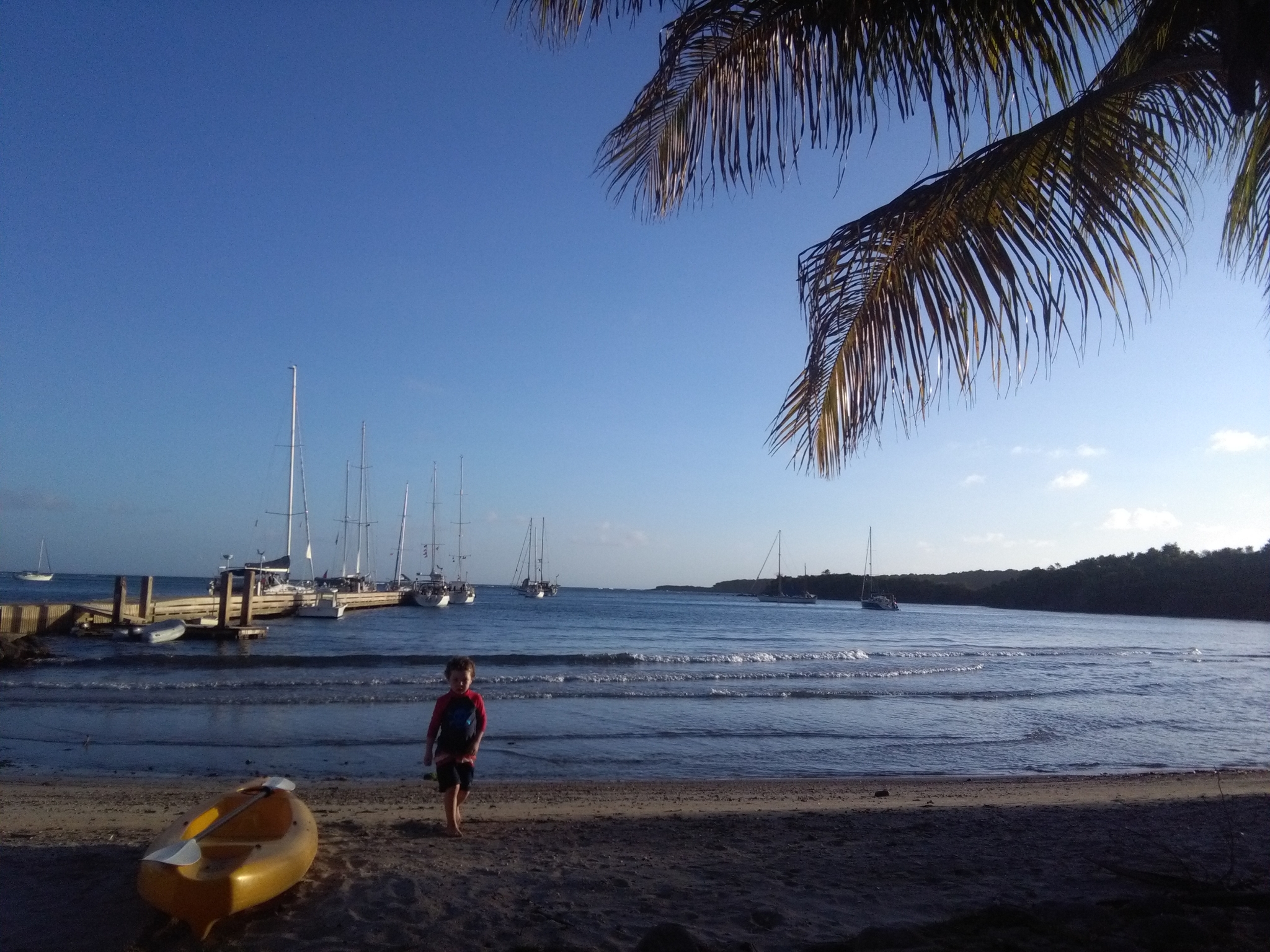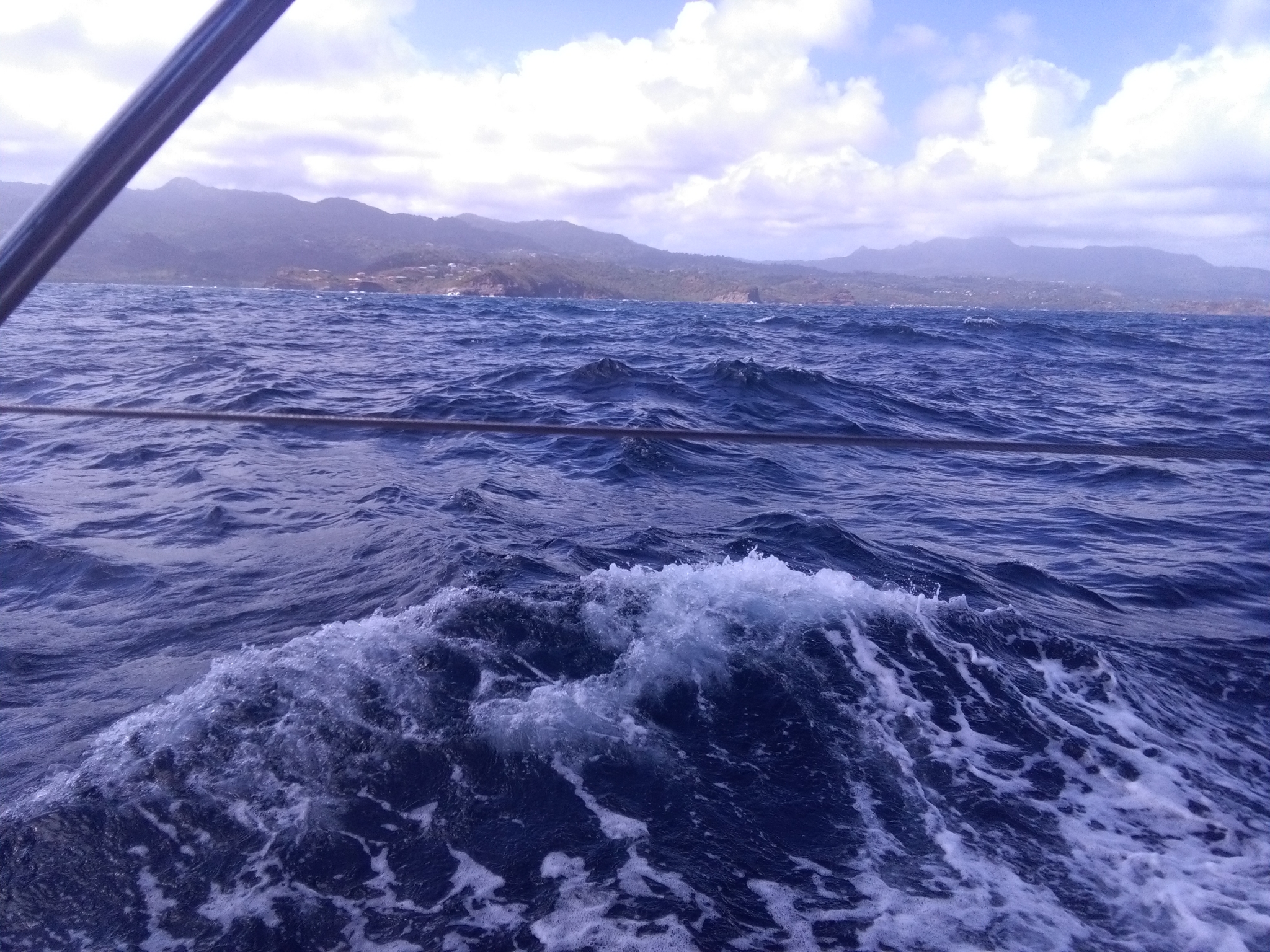 Der Ostküste Grenadas entlang. Dass es ruppig wird, war uns schon klar. Jedoch haben wir lediglich 30 Meilen vor uns, ein Lacher. Gerade mal 6 Stunden sind wir unterwegs. Eine hübsche Bucht für ein Werftgelände, im Südosten Grenadas. Da macht selbst arbeiten Spaß.