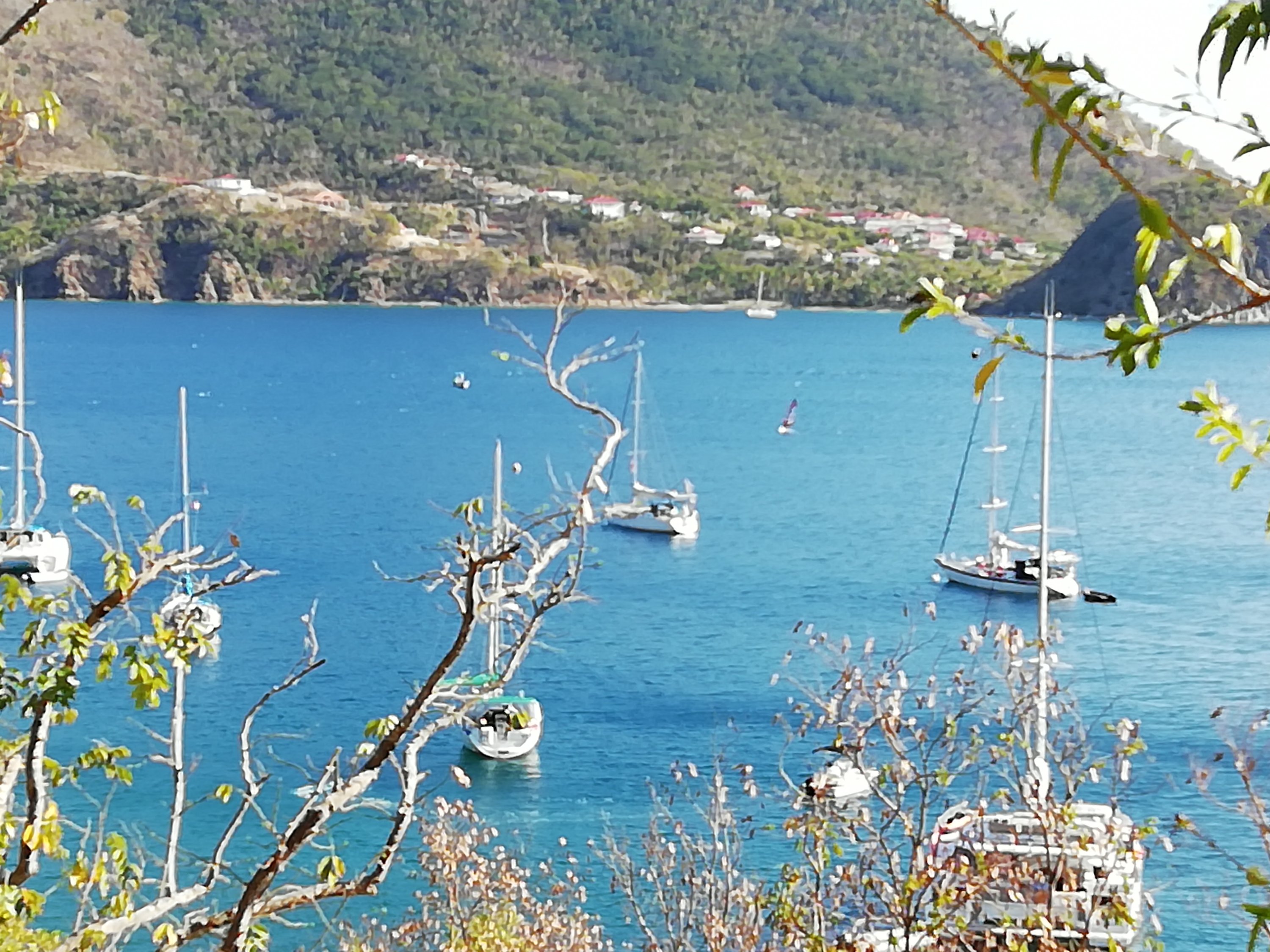 Man muss früh da sein, um noch eine Boje zu bekommen. Aber ‚we made it‘ Die letzte Boje erwischen wir gerade noch und die nachkommenden Boote warten außerhalb des Bojenfeldes, bis ein Platz frei wird. Ein sehr schõner Ankerplatz. Nur die Boien sind eine Katastrophe. Der Bügel für die Festmacherleinen ist aus verrostetem Metall und schlägt des öfteren gegen den Rumpf des Schiffes und droht das Gelcoat des Bootes zu beschädigen.