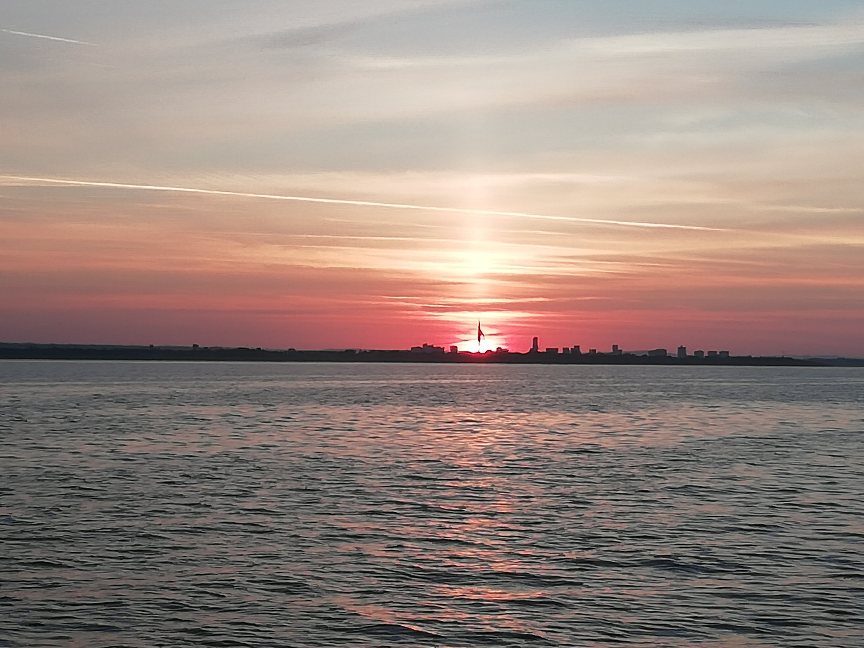 Am Abend erreichen wir Eastbourne mit den Kreidefelsen Küste, wo wir vor der Stadt, auf offener See ankern, da das Wetter ausgesprochen ruhig ist.