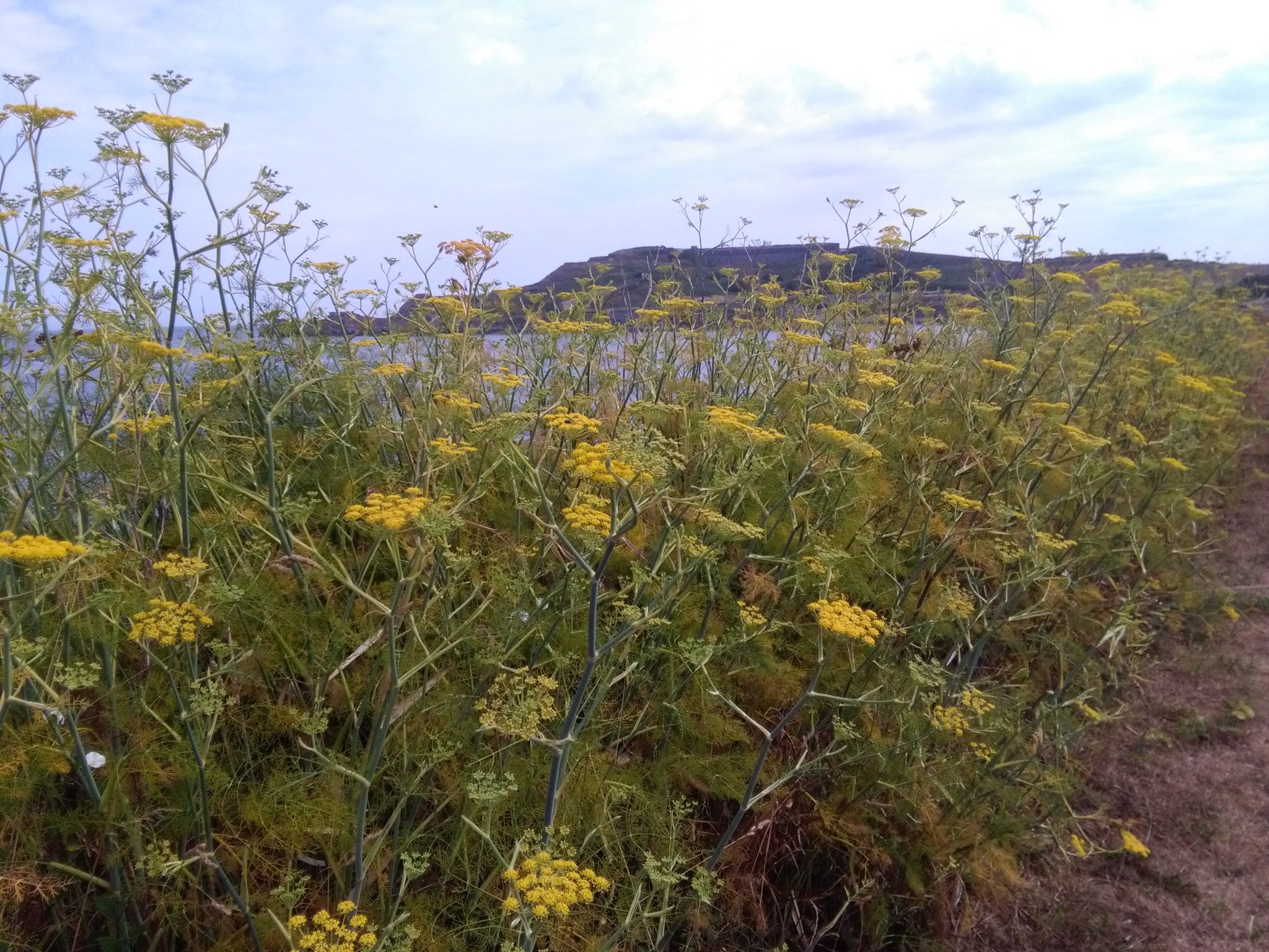 Da ganz oben auf dem Berg ist das Fort Albert. Im Vordergrund des Fotos riesige wilde Fenchelstauden.