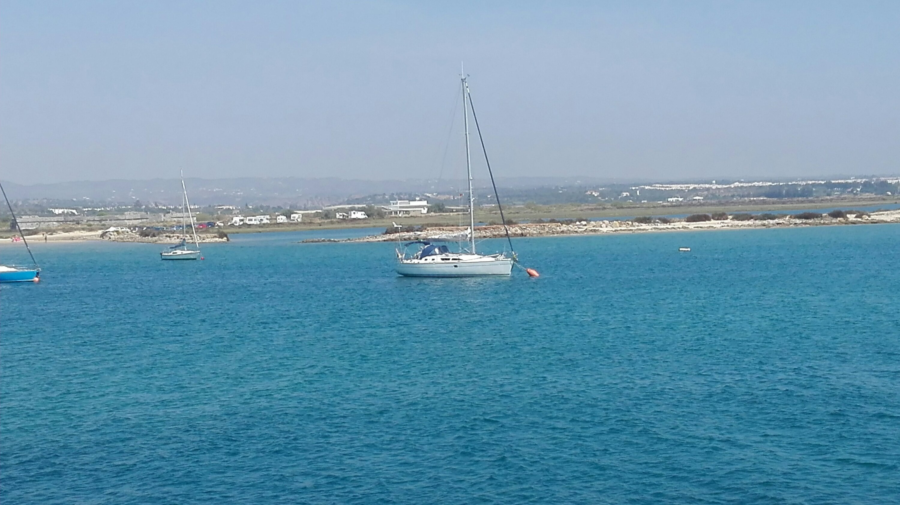 Zum Ankern war es zu eng. So haben wir gestern Abend noch mit Mühe eine Anker Boje in der Lagune von Tavira ergattern können.