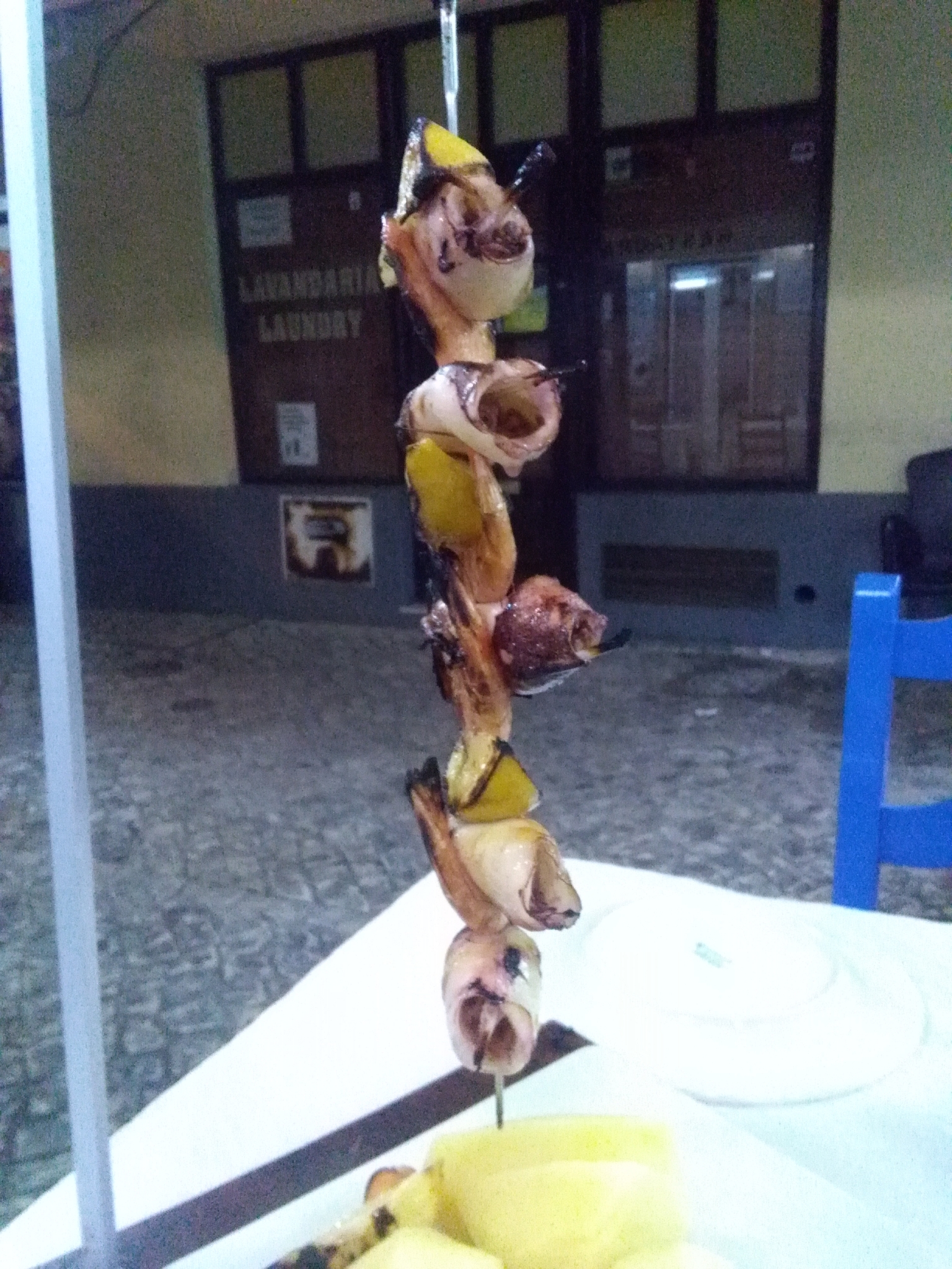 Heute Abend gibt es leckeren Tintenfisch Spieß.