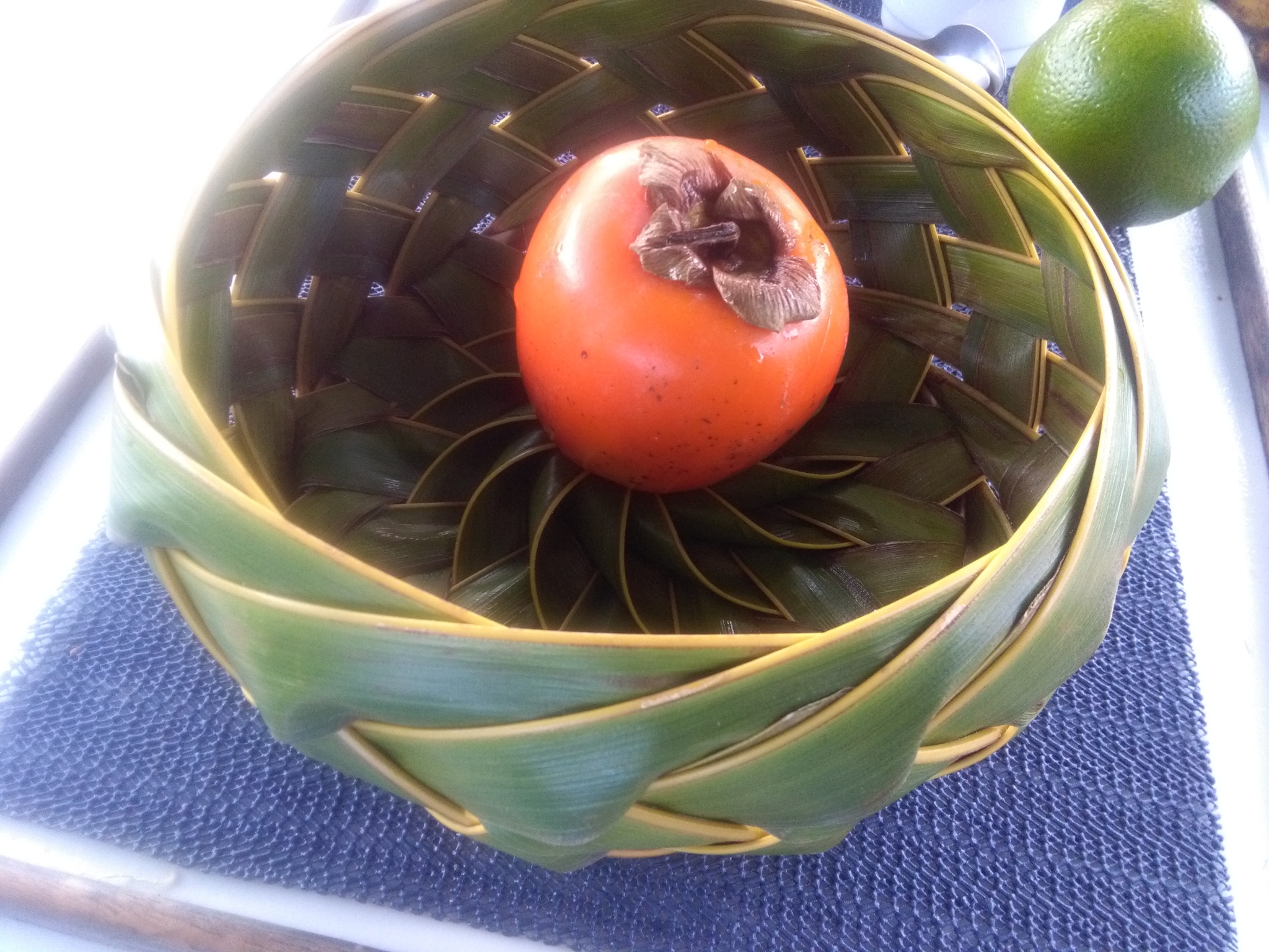 Unter anderem ein aus Palmblãtter kunstvoll geflochtener Korb.